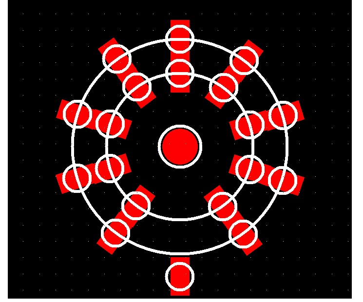 Nếu là vậy, thì phải tạo Padstaks dạng Rectang, và có góc quay 36 độ (that ra socket 9 pin, thì nó là 10 pin, bỏ 1. như vậy, mỗi góc quay của mỗi chân khác nhau là 36 độ ( là 360 độ chia 10 chân)