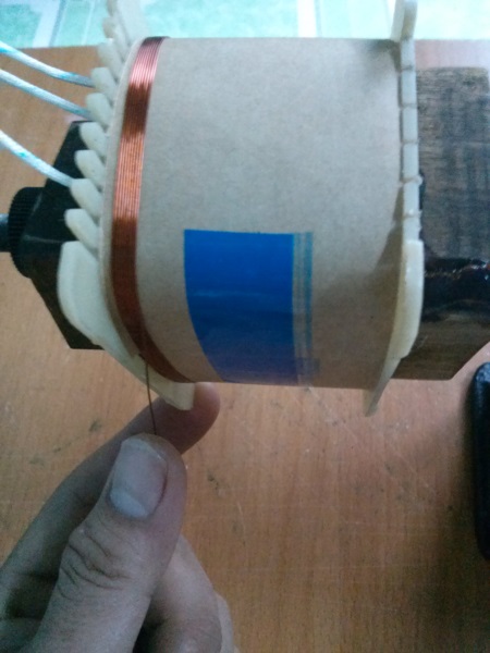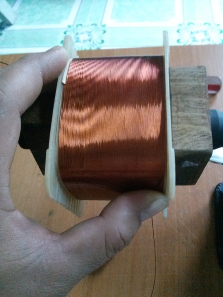 CHú ý, đây là kinh nghiệm của tôi thôi, khi lót giấy từng lớp, phải quấn thật chặt giấy lót vào lớp dây vừa quấn xong vậy mấy vòng dây hai thành lõi, nếu quấn quá chặt dây đè rớt qua khỏi giấy mỏng tăng sẽ lọt tõm xuống dưới, thì kg đẹp và sẽ thành cái “mương” khi quấn mấy vòng sau rất khó chịu. Vậy cứ quấn mấy vòng sát thành lỗi nhựa. Cứ quấn dây vừa sát lớp giấy, cảm nhận cái tay sao cho ôm sít lớp giấy là được. Đừng ham quá chặt mấy vòng dây sát thành lỗi này. Khi quấn được vài vòng của một lớp mới hay các vòng cuối này, có thể lấy vít dẹp nhỏ, sơ dịch mấy vòng này, cho gần sát thành lỗi nhất mà kg tuột xuống dưới là được