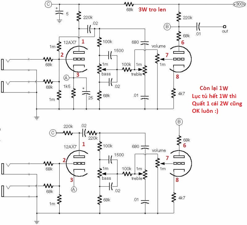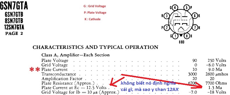 Thì với Cái 12AX thì 1,2mA, thì điện trở gánh trên 12AX để yên