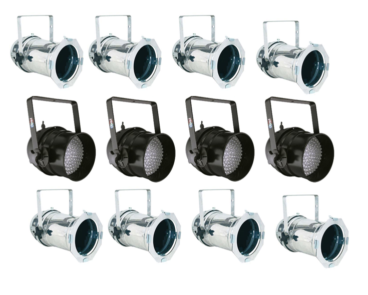 PAR led nên bố trí ở trên hay dưới PAR 64, tránh xen kẽ ở giữa vì sẽ bị ảnh hưởng luồng sáng của nhau. Tất cả phải gắn màu, 4 màu cơ bản là vàng, đỏ, lục, xanh (màu này hơi tối nên có thể đổi thành màu xanh ngọc-cyan sáng và đẹp hơn). Màu trắng lấy của PAR led.